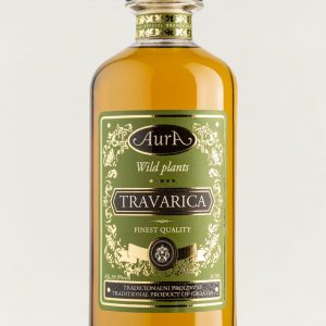 Damijanić Travarica ist ein Aperitif-Getränk, klar, leicht bräunlich.