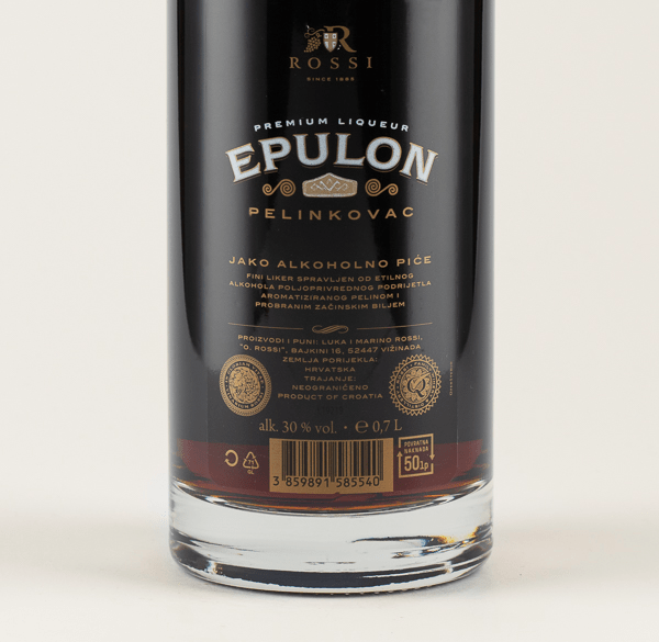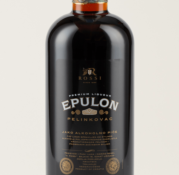 Pelinkovac (Wermutlikör) Epulon der Familie Rossi ist eine Hommage an Epulon, den legendären König Istriens. Sein Freiheitskampf gegen das allmächtige Römische Reich spiegelt sich im Kampf zwischen dem süßen und bitteren Geschmack dieses eleganten Likörs wider. In der Nase dominiert Wermut, gefolgt von Vanille-, Karamell- und Zitrusnoten. Die harte Bitterkeit von Wermut ist fein ausbalanciert mit beruhigenden Noten von Zitrusfrüchten, Anis, Vanille und Karamell. Es endet mit einem faszinierend ungelösten, süß-bitteren und lang anhaltenden Nachgeschmack.