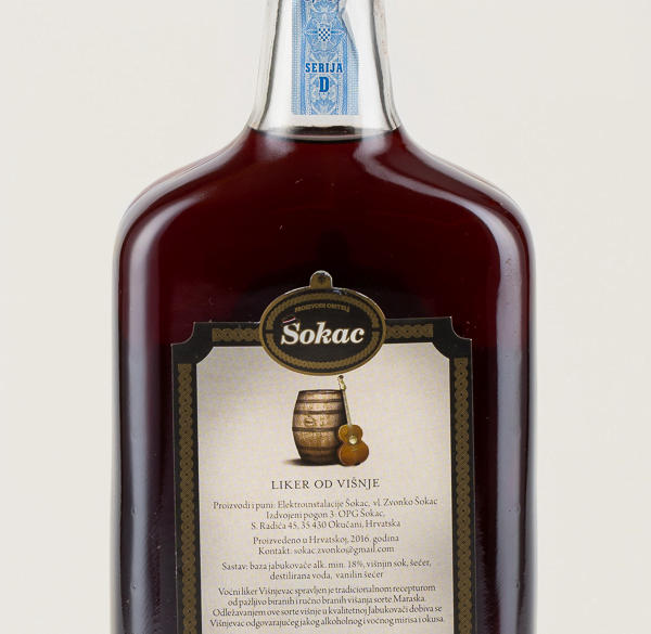 Der Fruchtlikör Šokac Kirsche wird nach einem traditionellen Rezept aus sorgfältig ausgewählten und handverlesenen Maraska-Kirschen hergestellt. Nach der Reifung dieser Kirsche in einem hochwertigen Apfelsortenbrand entsteht ein Likör mit einem schönen fruchtigen Aroma und Geschmack.