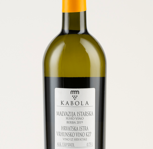 Kabola Malvazija je vino lijepe zelenkasto žute boje, kristalno je bistro i djelomično gusto. Na nosu se otvara miris cvijeta bagrema, nota svježe jabuke..