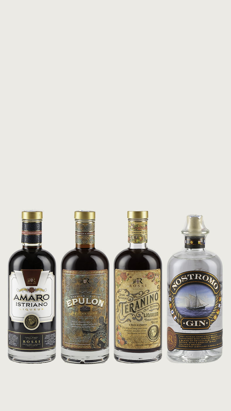 A great combination for all spirits and liqueur lovers and ones who like to explore Croatian traditional drinks. Unique opportunity to try different styles of distillates from the Rossi family at home. Four different styles of distillates, all available in the same package at a discounted price. Save over 20% on this special offer.